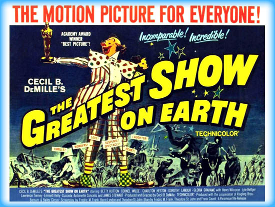 The Oscars often give career awards, and often do so in the wrong year, which may be the case here. DeMille had been an early mover and shaker since the silent days, and was a brand unto himself. The Academy may have thought this was his last best chance. The next film DeMille made would have made a more understandable winner, and certainly was a better choice than the actual winner.