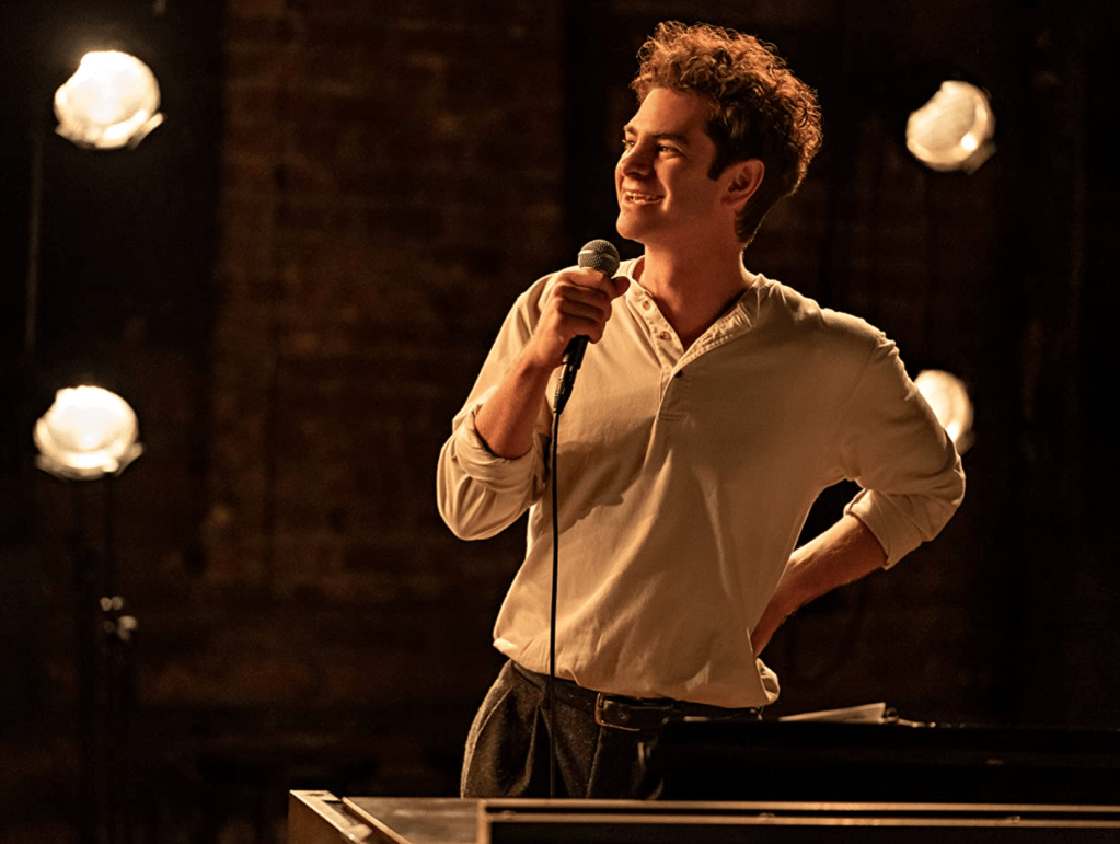 Tick, Tick…BOOM! is easily the best of these three, and contains what I believe and hope will be an Oscar-nominated performance for lead actor Andrew Garfield (The Social Network, The Amazing Spider-Man), who has already won some awards for this performance, and has garnered many more nominations for it. It’s also the first film by director (and actor/singer/songwriter/playwright/Pulitzer Prize winner) Lin-Manuel Miranda, still most known for Hamilton. If you’re waiting to see what limits this creative genius has, you won’t find it demonstrated here. It’s a great first film, and since it is about Jonathan Larson, the writer of Rent who died before that play became big, it features the issue of creativity by a director who knows something about the process. (Note: It’s not specifically about the creation of Rent, but about the play that shares the film’s title.) Miranda’s deep understanding of the creative process and Garfield’s performance are the gems here. Garfield learned to sing and play the piano for the role, and he has the perfect singing voice for this kind of artist. If you’re familiar with the actor, you’ll be surprised by the energy, cluelessness, vulnerability, and sheer kookiness he brings to the role.