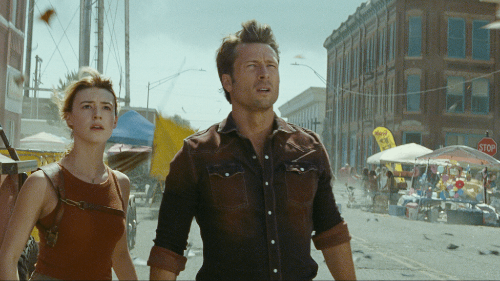 Example: the lead female is the very talented Daisy Edgar-Jones (Where the Crawdads Sing, “Under the Banner of Heaven”), but her character eventually becomes LESS defined as the film progresses. She is presented as strong and smart (like Helen Hunt’s character) and has a traumatic experience in her past with a tornado (like Helen Hunt’s character). But when her not-that-terrible challenging moment comes to her, and everything is at stake (spoiler alert), this strong and capable woman whiffs it at the most important moment. Unlike the original, there is a kind of very ill-defined “love” triangle that teases in a couple of unsatisfactory directions, unlike the Bill Paxton-Helen Hunt electric give and take of the original.