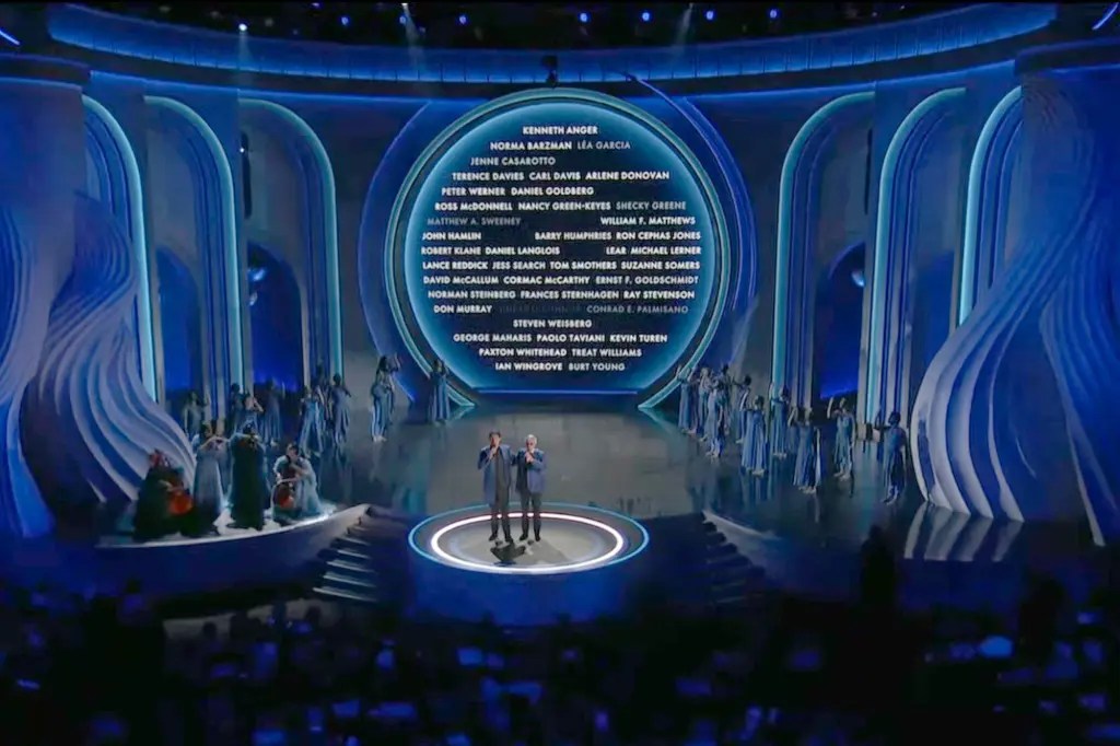 The “In Memoriam” number. Love that every year. But…do your homework and anticipate who might be omitted. And please, don’t make this a live vocal performance. The focus should be on the folks who passed, not the wonderful singer looking up at the screen occasionally. I am a singer and love beautiful voices, but a talented performance is distracting and disrespectful here, no matter how lovely the lighting.