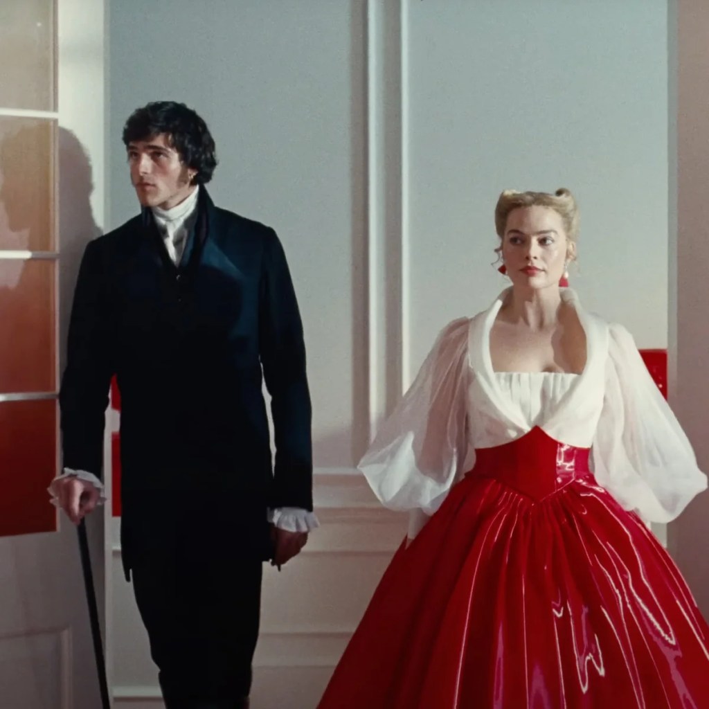 Much has and will be written about how it is faithful or not to the novel. The hint that this isn’t an aim is found in the pair of parentheses around the title—a bit affected but telling. This is co-writer/director Emerald Fennell’s take on the famed story of two doomed lovers, and she sure takes it. It’s best to come into the viewing of this with no thoughts, or especially no particular affection to the novel.